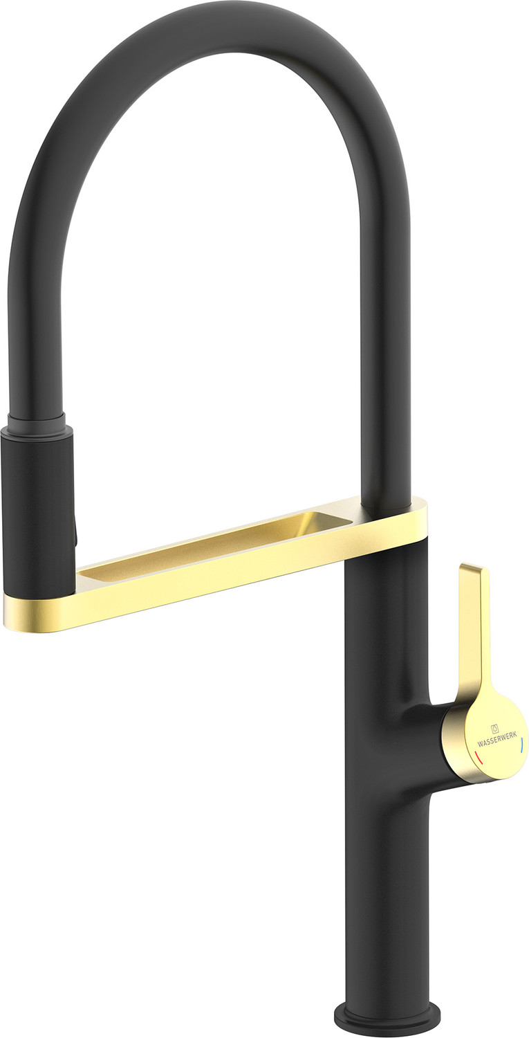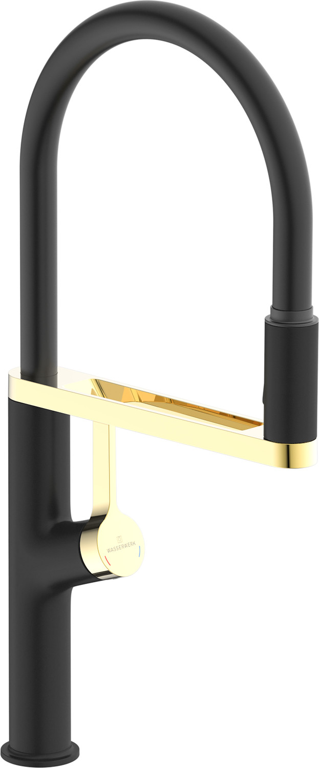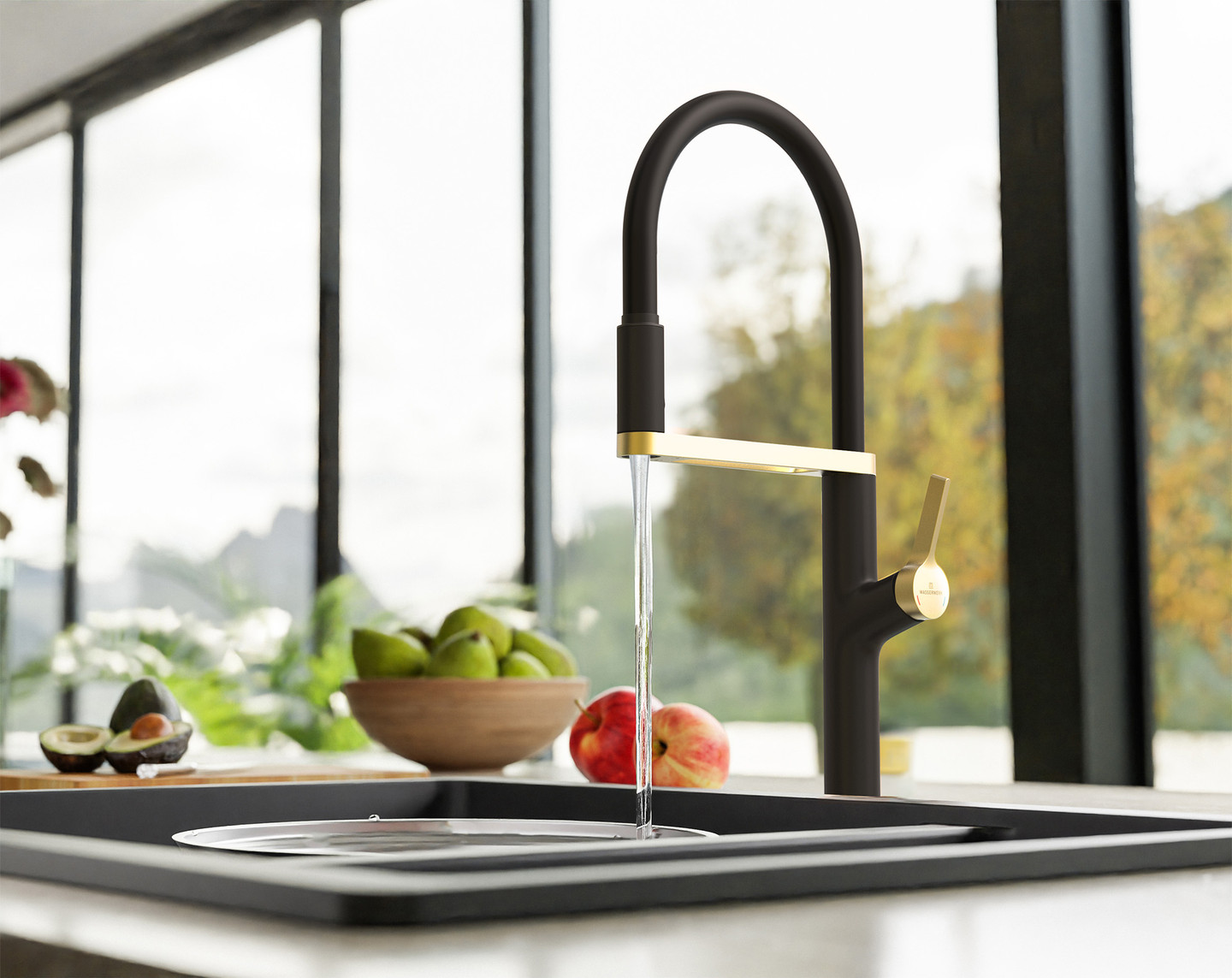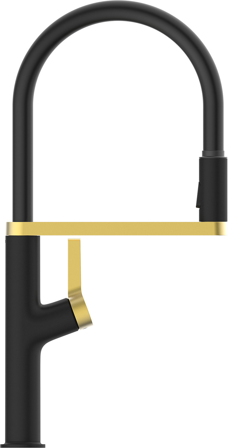 Mitigeur de cuisine Luisina, bec pivotant noir mat et or brossé PVD avec douchette mobile double jet