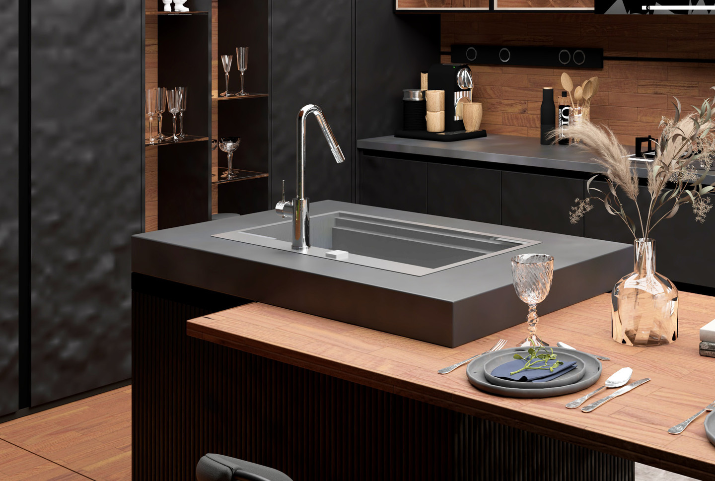 Mitigeur avec cartouche céramique, débit à 12L/mn à 3 bars. Flexibles fixes.