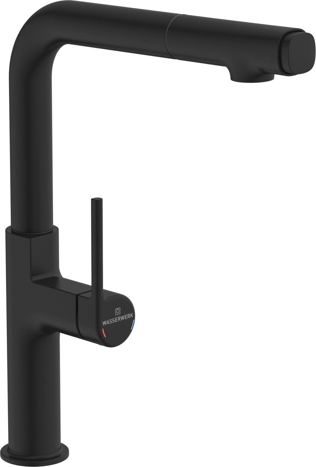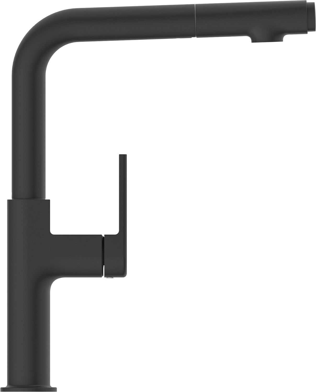 Mitigeur de cuisine Luisina, bec pivotant noir mat avec douchette extractible double jet