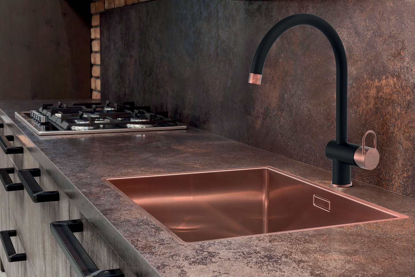 Mitigeur avec cartouche céramique, débit à 15,7L/mn à 3 bars. Flexibles fixes.