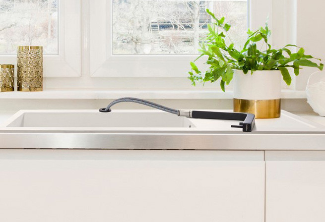 Mitigeur avec cartouche céramique, débit à 7,90L/mn à 3 bars. Flexibles fixes. Mousseur Néoperl éco inclus, pouvant réduire après installation le débit d'eau à 5,90 l/mn. Mitigeur orientable et déboitable pour installation sous fenêtre.