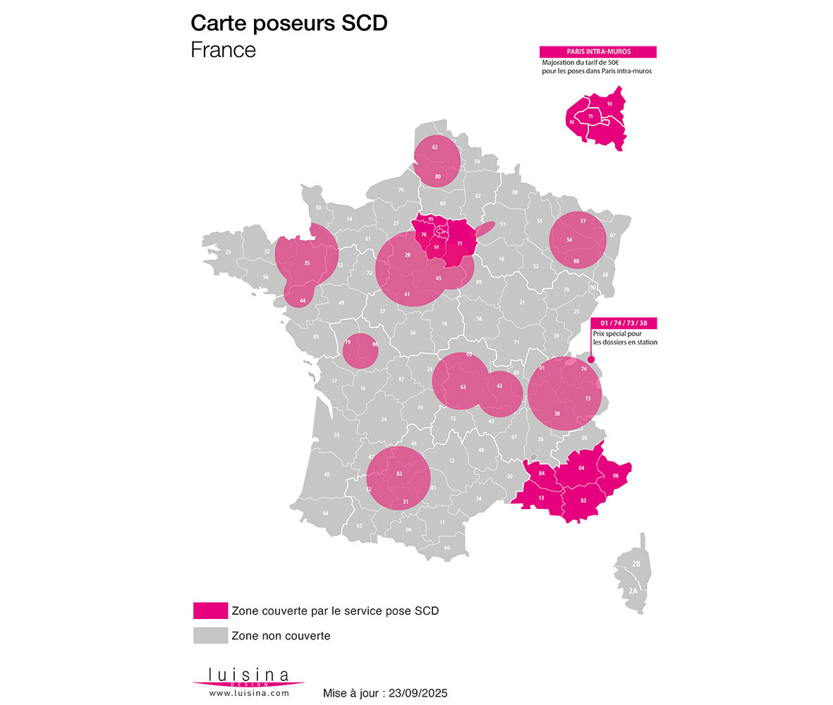 Grâce à notre réseau de métreurs et poseurs agréés répartis sur toute la France, Luisina vous fait désormais profiter de sa nouvelle offre complète où nous prenons en charge l'intégralité de votre commande plan de travail.