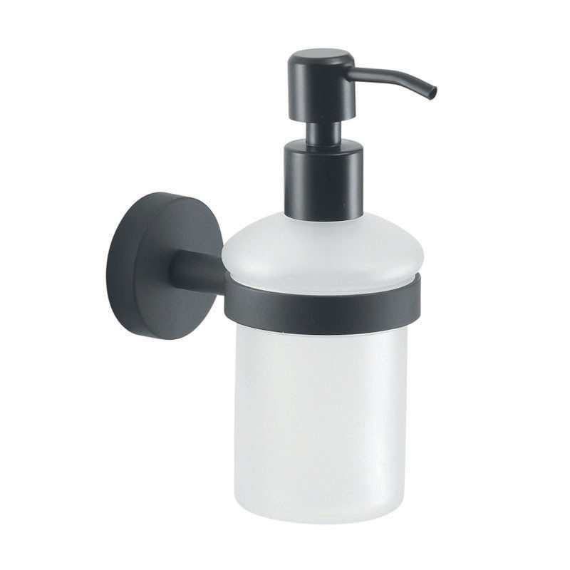 Distributeur de savon à fixer coloris Noir Mat et Verre Satiné