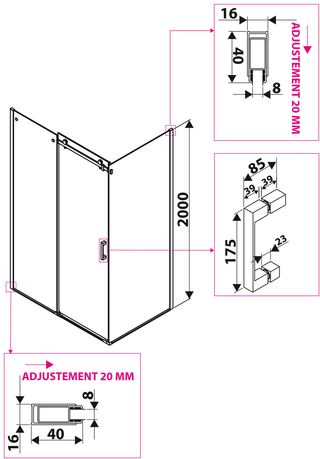 Porte coulissante et paroi fixe Sirli 1200 x 900 mm