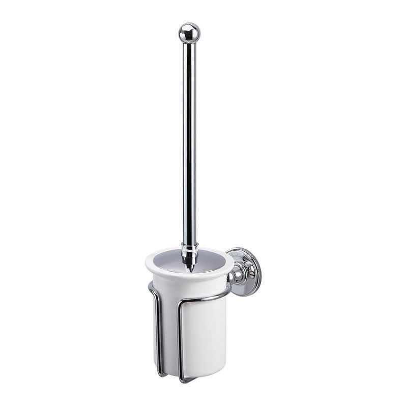 Porte-brosse WC en laiton et céramique.