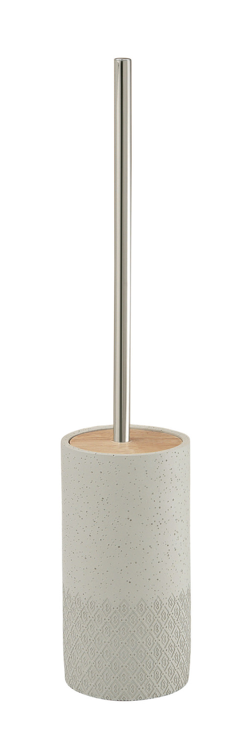 Porte brosse WC en béton et bambou avec brosse en nylon.