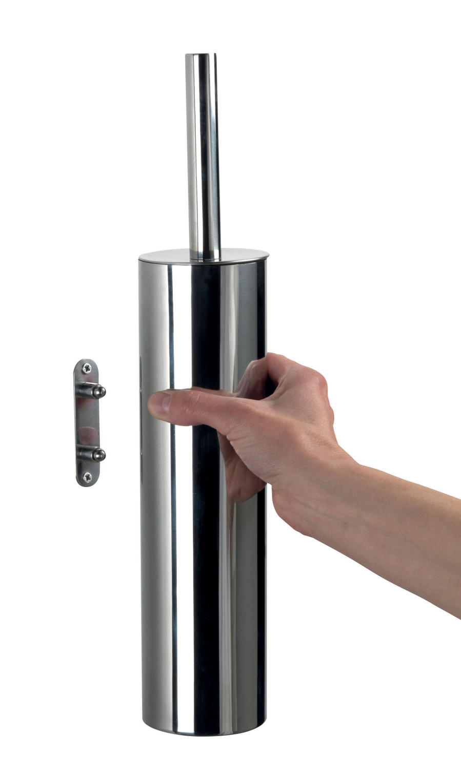 Porte-brosse WC clipsable en inox avec brosse en nylon.