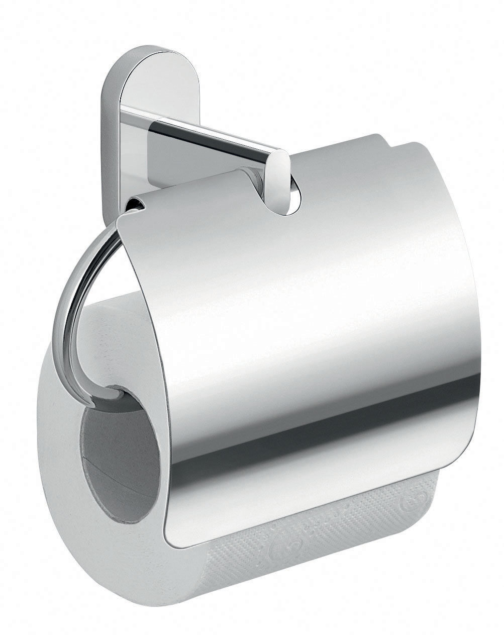 Porte-papier toilette avec couvercle à fixer coloris Chromé